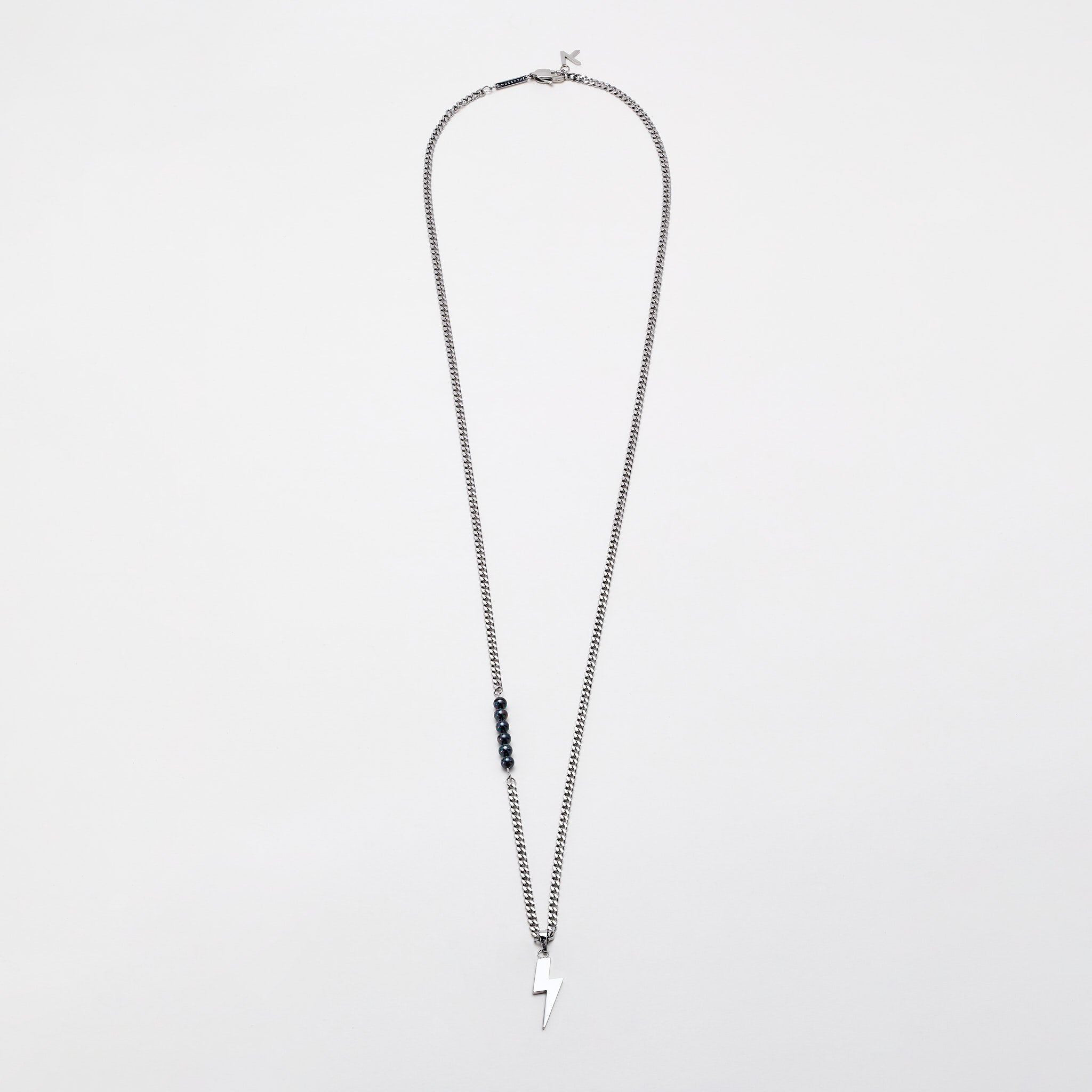 The bold lightning pendant is an electrifying statement in the necklace. Softened by the grace of real pearls, the Lightning Necklace is a trendy addition to a fashionable individual’s collection.